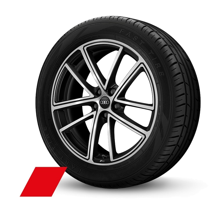 Диски Audi Sport, 5 сдвоенных спиц, черный металлик, полированные, размер 8Jx20, шины 255/45 R20