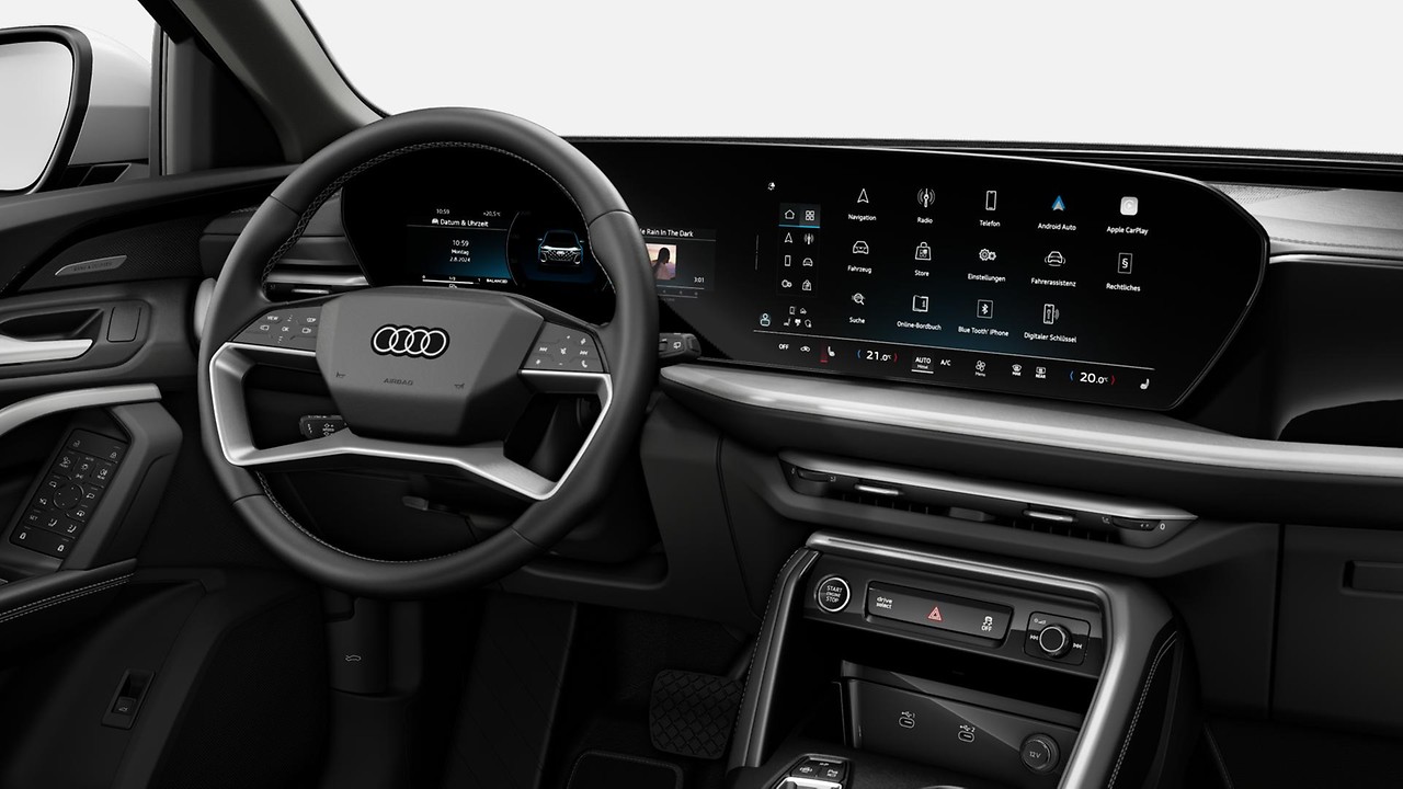Спортивное рулевое колесо с кожаной отделкой, скошенное сверху и снизу, с многофункциональными органами управления